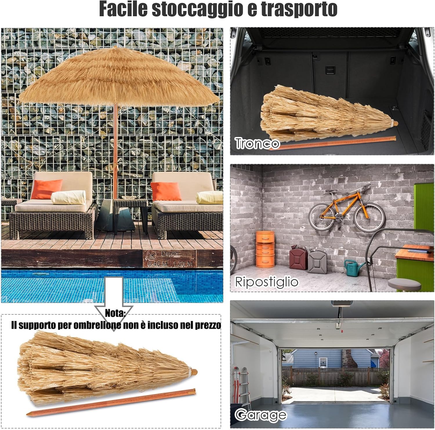 ☀️【Multi-purpose】Our parasols have a unique Hawaiian style and are perfect for the beach, balcony, patio etc. Note: Umbrella base is not included.