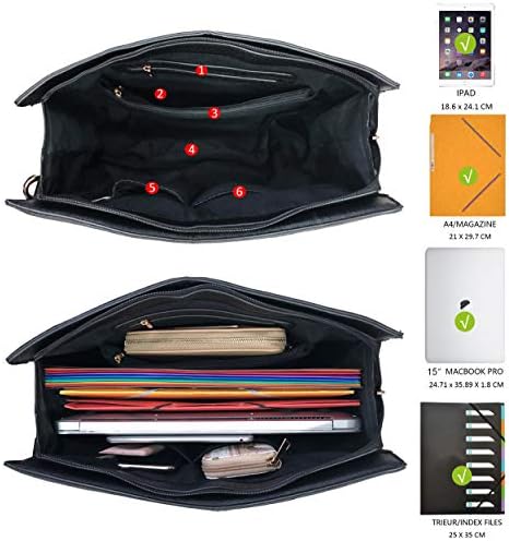 CHIUSURA & DIMENSIONI: Chiusura a zip. Lunghezza 38 x Altezza 31 x Larghezza 15 cm. Dimensioni sufficienti per computer portatile da 13 o 15 pollici e raccoglitore grande con leva 24 x 32 cm.