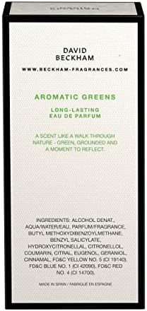 David Beckham, Eau de Perfume Aromatic Green, Profumo Uomo, 100 ml. Una fragranza esperoidata legnosa. Limone piccante, foglie verdi ghiacciate, aromi rilassanti, sottolineati dalla mascolinità dei legni. Questa fragranza è ispirata dall’esplorazione della natura e da una camminata attraverso la foresta pluviale o in un giardino tropicale, durante la quale godersi l’aria fresca e il verde, uniti alla serenità della natura. Un’ode ai momenti di pura calma e alla natura.