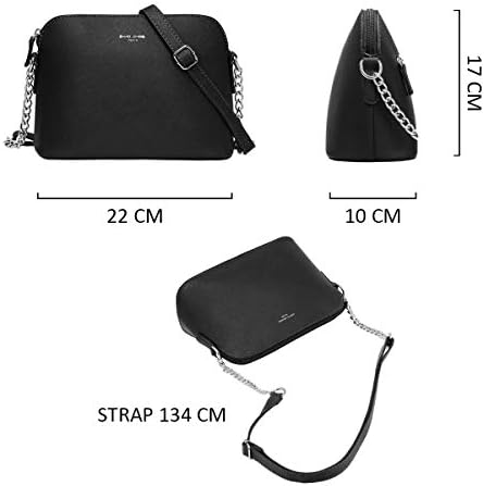 David Jones Piccola Borsa a Tracolla Spalla Donna Catena Borsa Mano PU Pelle Messenger Crossbody Bag Clutch Borsetta Sera Pochette Elegante Shopping Viaggio Sacchetto Borsello 22x17x10 cm Nero
