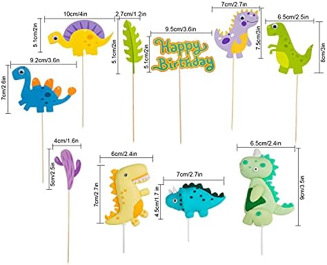 🎂 Set di decorazioni per torte: 3 * dinosauri in ceramica morbida, 4 * dinosauri, 2 * fogli, 1 * cartello in cartone “Happy Birthday”, accessori in legno.