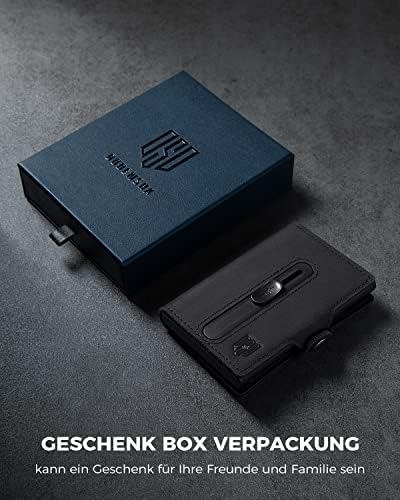 Unsere Slim Wallet wurde in einer luxuriösen matten Geschenkbox verpackt, die das perfekte Geschenk für alle Männerfeste ist. ZB, Vatertag, Weihnachten, Geburtstag, Jubiläum, Valentinstag und andere besondere Anlässe.