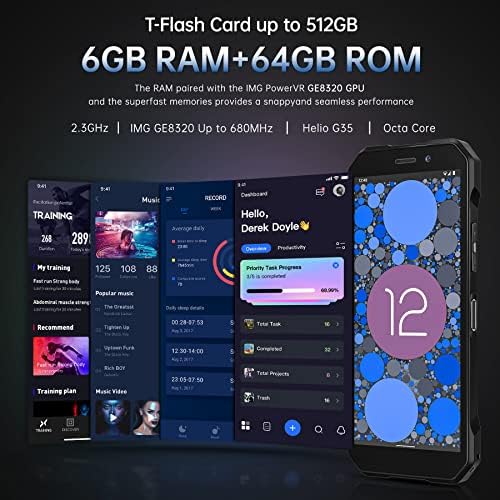 Sistema operativo: Android 12CPU: Helio G35 Octa CoreBatteria: 5180 mAh di tipo CDisplay: schermo LCD da 6,0 pollici HD+ (1440*720) con tecnologia IPSMemoria: 6 GB di RAM 64 GB di ROM (supportata l’espansione della scheda TF da 512 GB)Fotocamera: fotocamera principale AI da 20 MP + visione notturna da 20 MP + fotocamera frontale da 8 MPTre slot per schede: 1x Nano SIM + 1x Nano SIM + 1x scheda TFNavigazione: GPS+GLONASS+Beidou+GalileoRete: 4G Dual SIM Dual standbyNFC Google Pay e doppi altoparlantiFotografia subacquea: supporto per la registrazione di foto e videoCaratteristiche: ricarica inversa OTG, ID impronta digitale, Bluetooth 5.0, WiFi 2.4G/5G, chiamate WiFi, jack da 3,5 mm