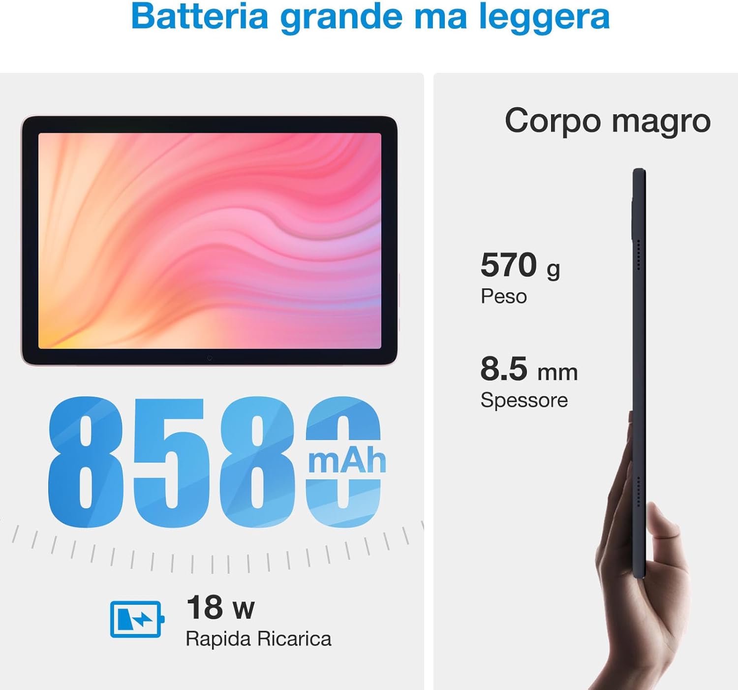 🎊【Design elegante e doppi altoparlanti stereo】T10PRO Android Tablet è sorprendentemente leggero, con soli 568 g, e grazie al design leggermente curvo della cornice centrale, non solo è comodo da tenere in mano, ma anche facile da trasportare; dotato di doppi altoparlanti stereo di grandi dimensioni, il Tablet PC T10PRO offre un’esperienza coinvolgente.