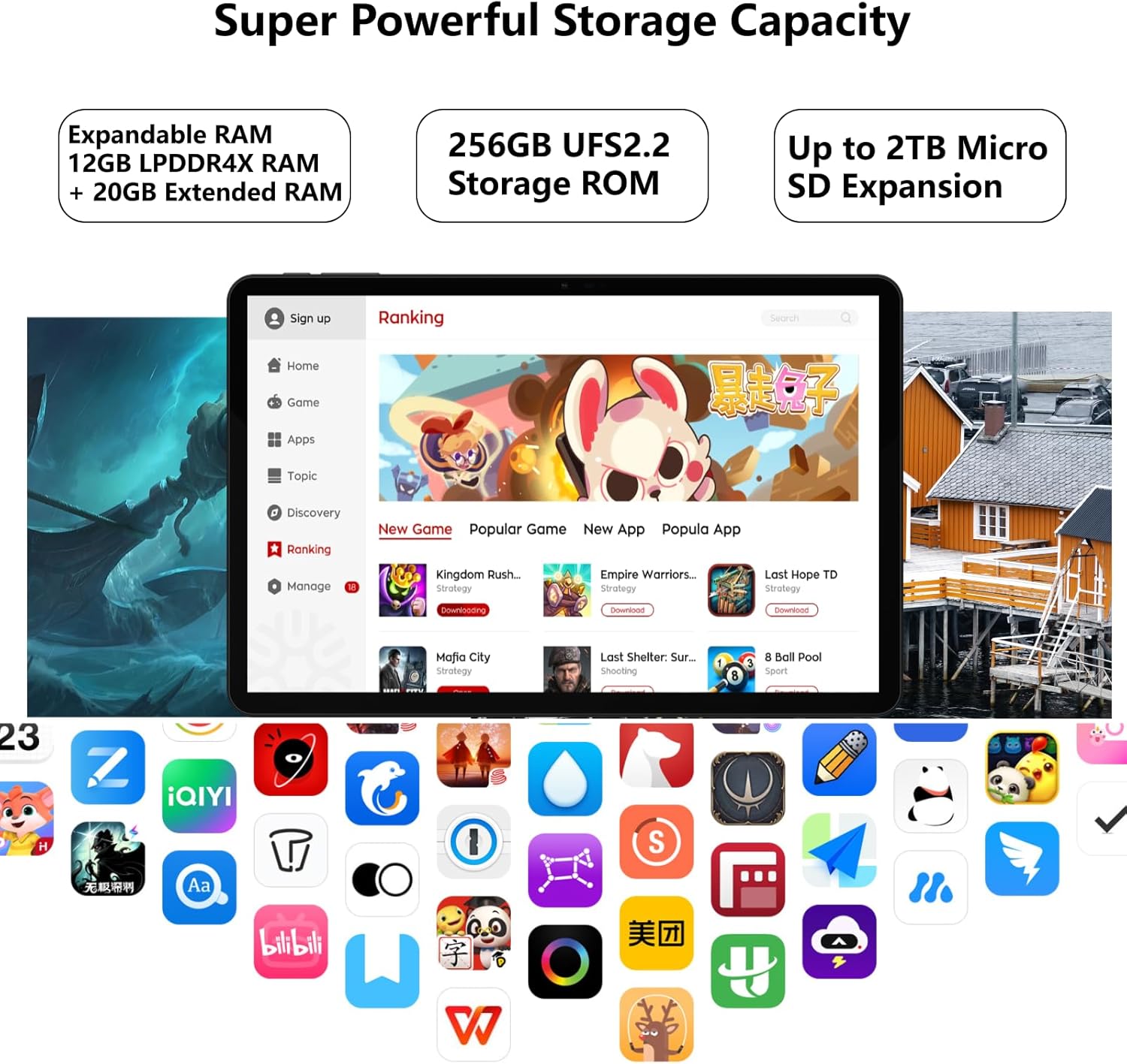 🚀 【32 GB di RAM + 256 GB di ROM + Processore Helio G99】:DOOGEE T30 Ultra tablet ha 32 GB di RAM (12 GB di RAM + 20 GB di memoria espandibile) e 256 GB di memoria interna. Il tablet da gioco Android da 11 pollici è dotato del MediaTek Helio G99, il chip più potente del tablet, estremamente veloce ed efficiente dal punto di vista energetico. Che tu stia giocando o eseguendo vari software, questo tablet Android 13 offre un’esperienza operativa fluida.