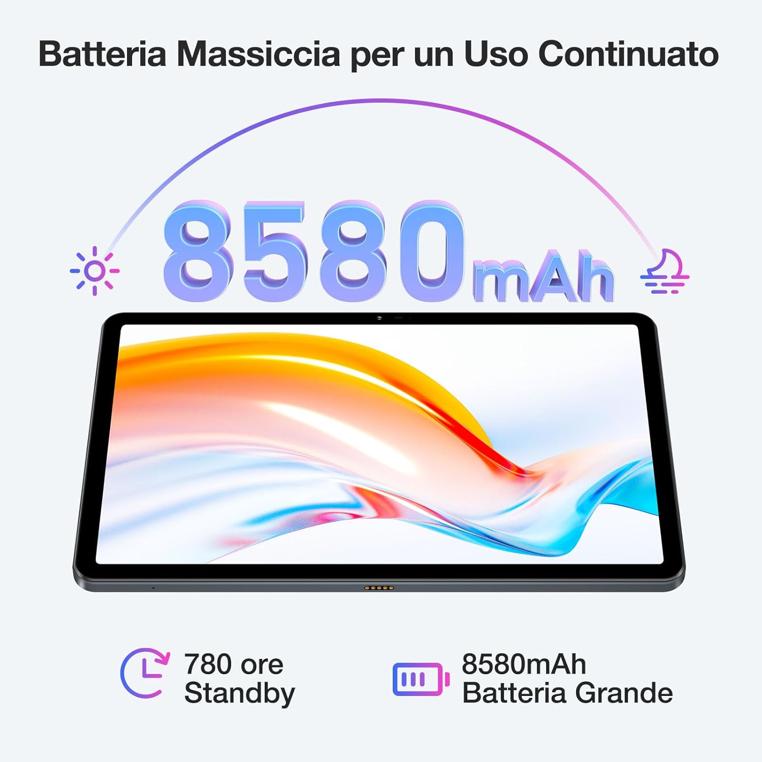 【11 Pollici+ 8580mAh+ Altoparlanti Stereo】Il tablet 11″ Android 14 è dotato di un display IPS 11 pollici a colori 2.4K con colori brillanti. Tablet con sim batteria integrata ad alta capacità da 8580mAh, abbinata a un OS efficiente e a un OS di risparmio energetico, consente di ottenere un tablet in grado di funzionare per lunghi periodi di tempo.DOOGEE T30SE Tablet PC è dotato 4 altoparlanti stereo, il suono è brillante e chiaro e si può godere di un’esperienza visiva e uditiva surround 3D