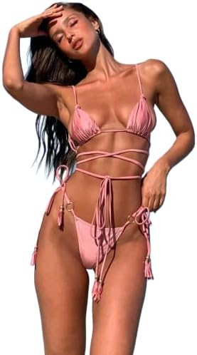 Ducomi Emy Costume Donna Due Pezzi Mare – Bikini da Bagno con Top Triangolo Push Up e Brasiliana Sgambata con Laccetti – Costumi da Spiaggia Sexy