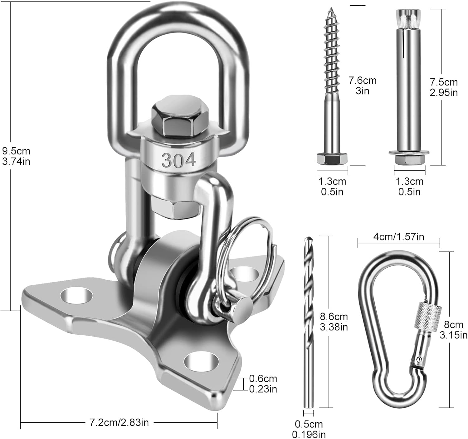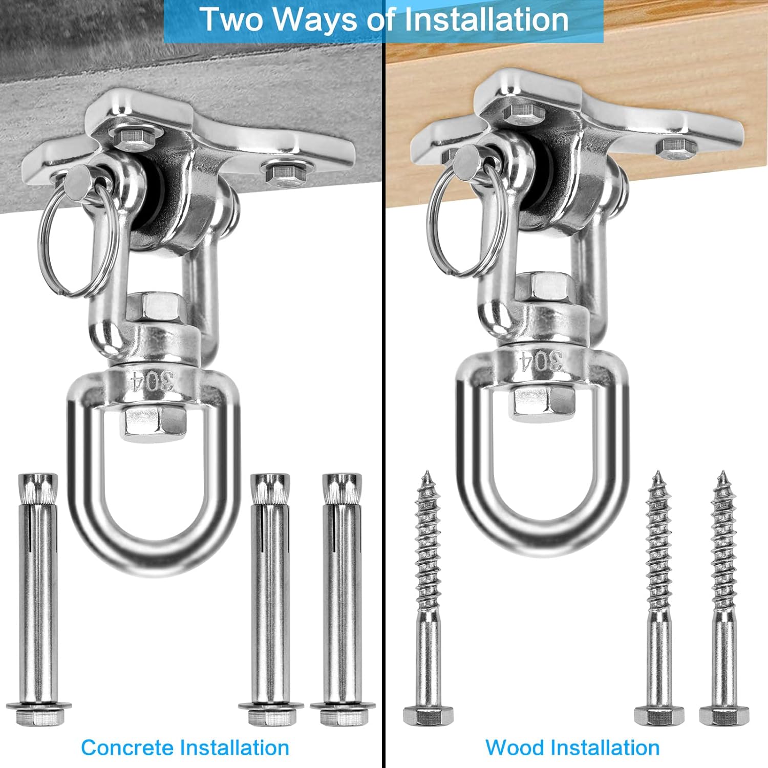 Ampia gamma di applicazioni: il gancio da soffitto è adatto per uso interno ed esterno, ideale per soffitti in cemento e travi in legno, altalene per amache, sedie, sacco da boxe, lampada, imbracatura, yoga, tenda da sole, imbracatura e altro ancora.