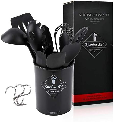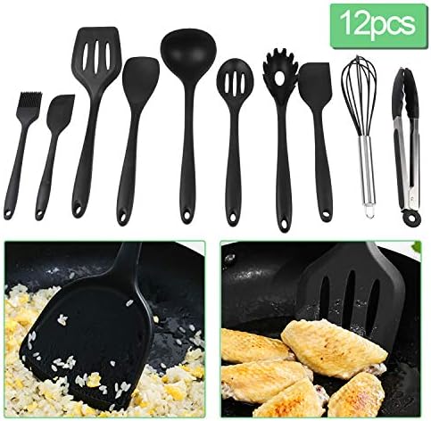 EINFEBEN Utensili Cucina Silicone Set, Set di Utensili Silicone, 12 pezzi, Antiaderenti, Resistenti al calore, Utensili da cucina per alimenti, con spatola, frusta, nero