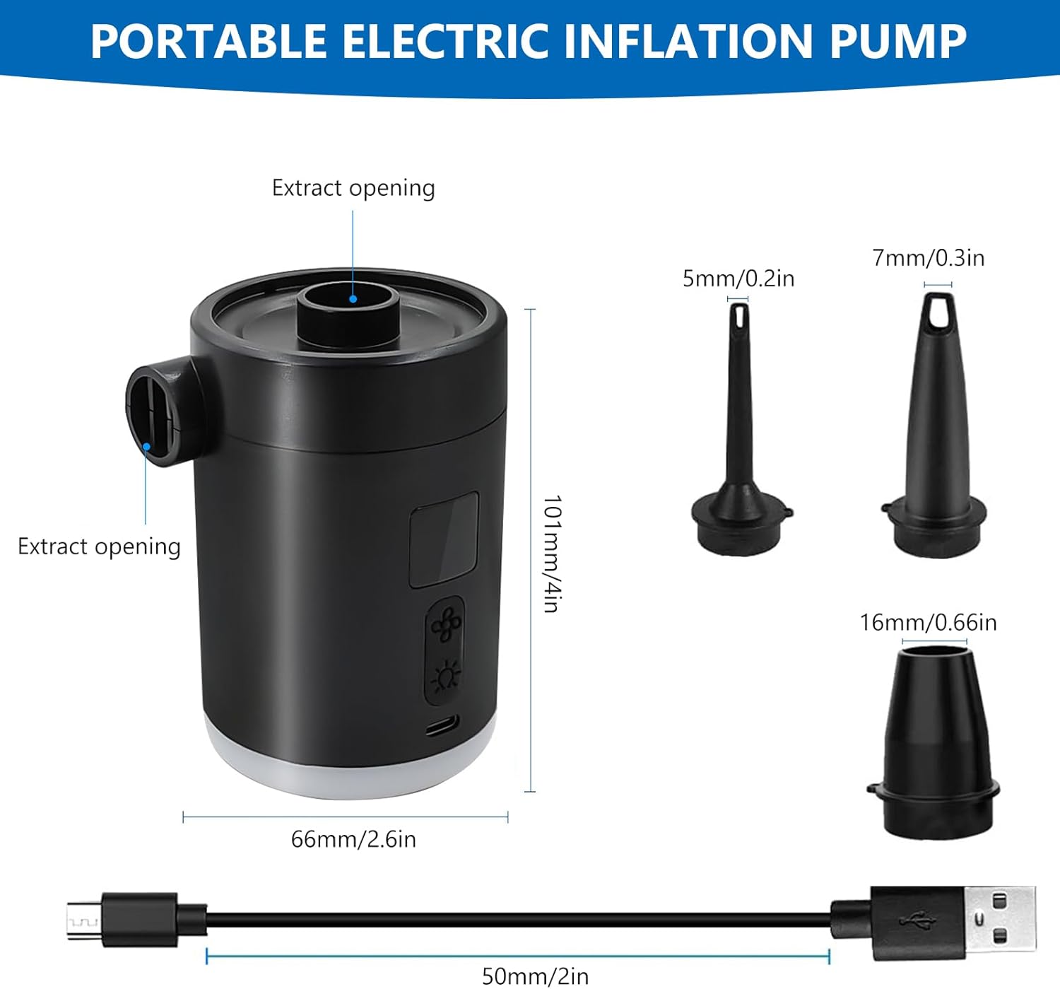 Intelligent Protection: The battery operated rechargeable air pump provides a safety mechanism that automatically cuts off the power when overheating or detects a short circuit. Safe operation of the electric air pump is guaranteed.