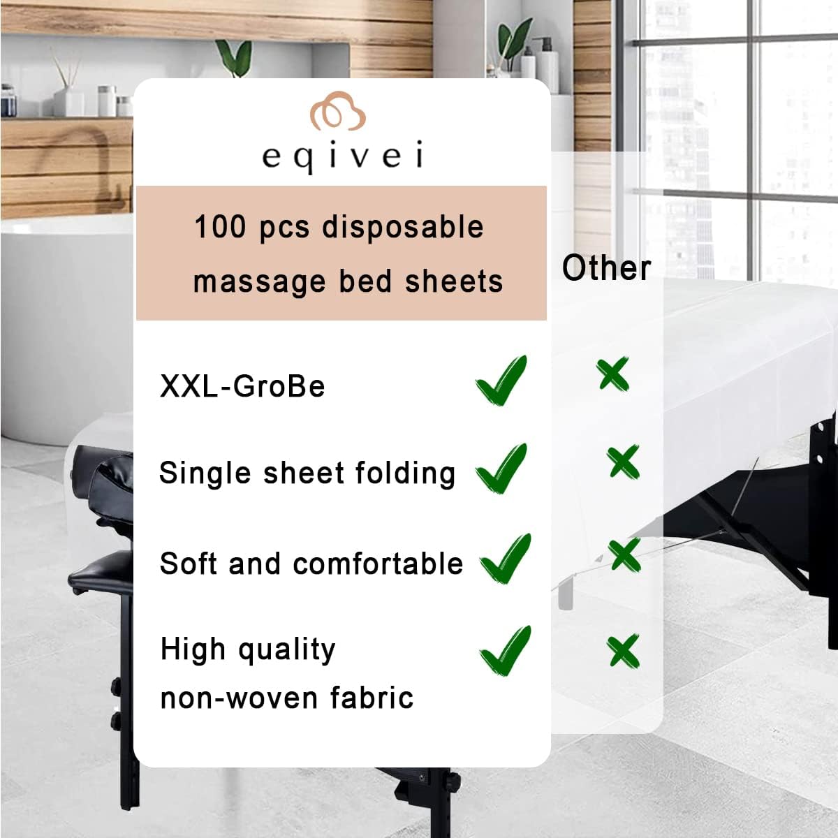 Ciascuna piegata singolarmente per un facile accesso. Il lenzuolo per massaggi monouso Eqivei è super morbido, morbido e resistente abbastanza per un uso professionale. Adatto per tutti i lettini da massaggio, lettini da trattamento.