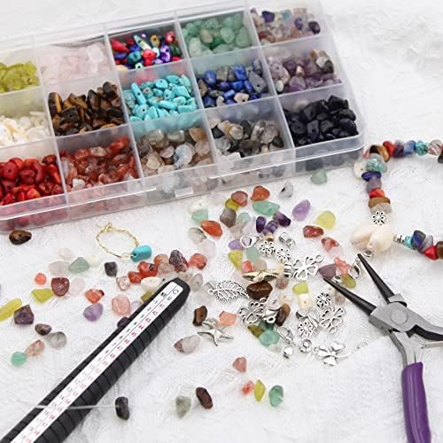 EuTengHao Kit per la creazione di gioielli fai da te con 933 accessori irregolari in pietra per braccialetti e collane. Ciondolo di perline di buona qualità per la creazione di gioielli, come collane da donna, orecchini, cavigliere, anelli, spille, ciondoli e così via.