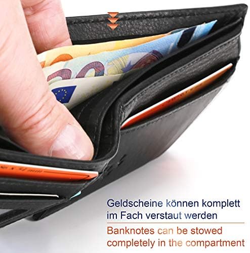 ✔ Blocco RFID certificato TÜV: per la schermatura di onde radio NFC e RFID, questo elegante portafoglio è dotato di una protezione RFID avanzata, in modo che i dati rimangano al sicuro