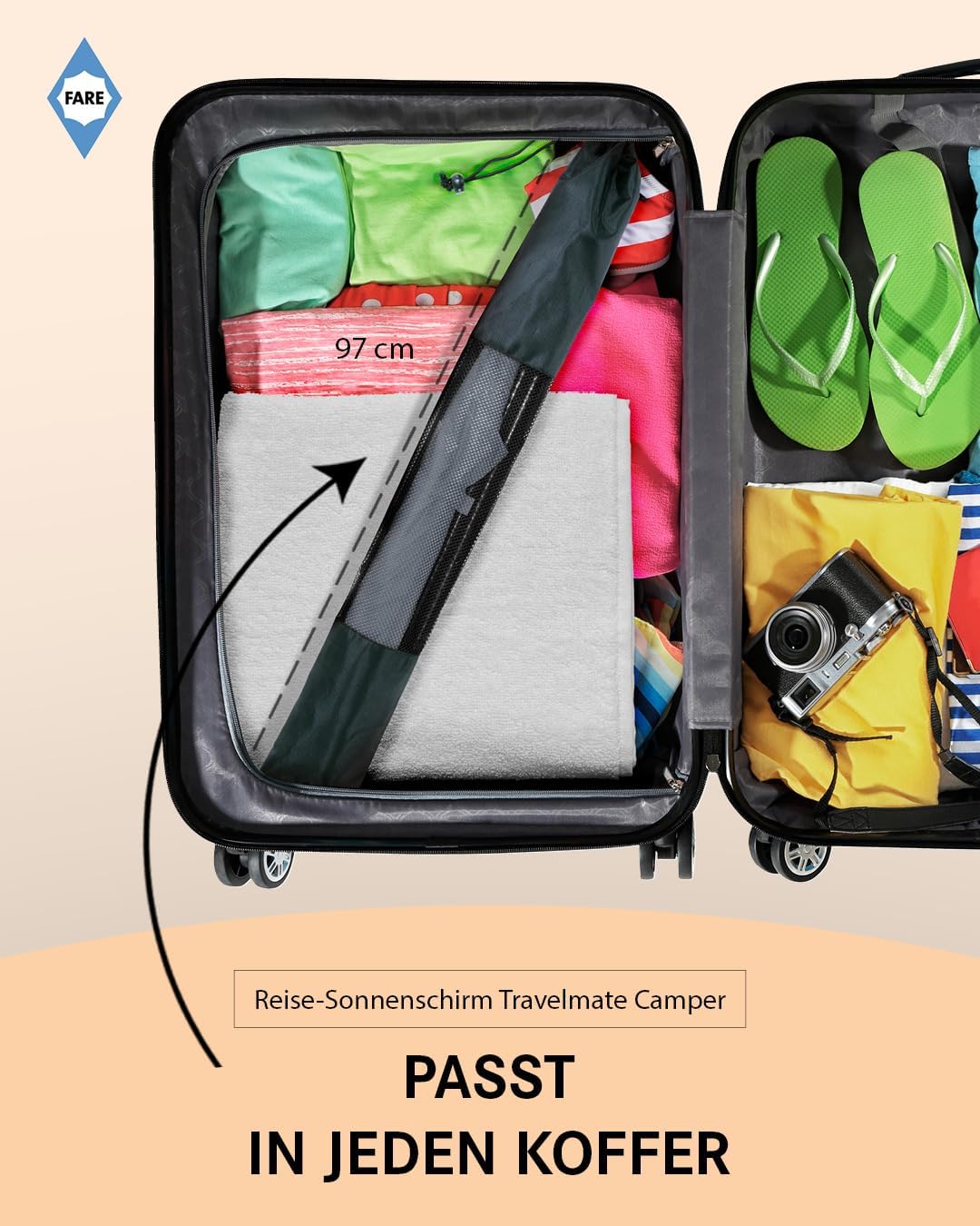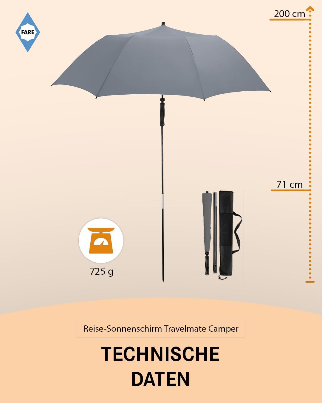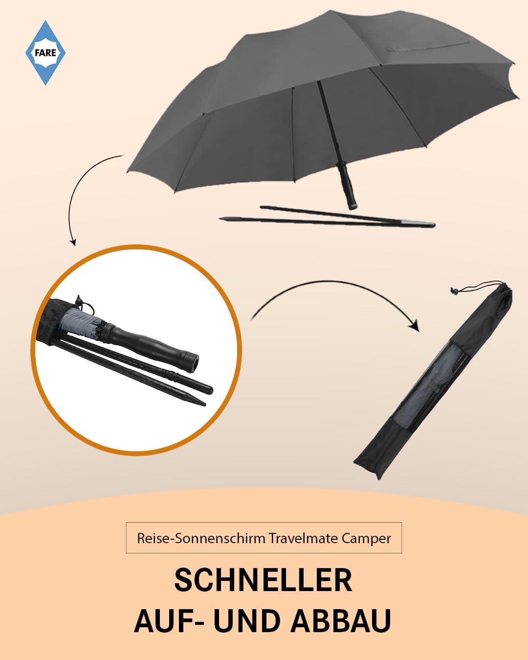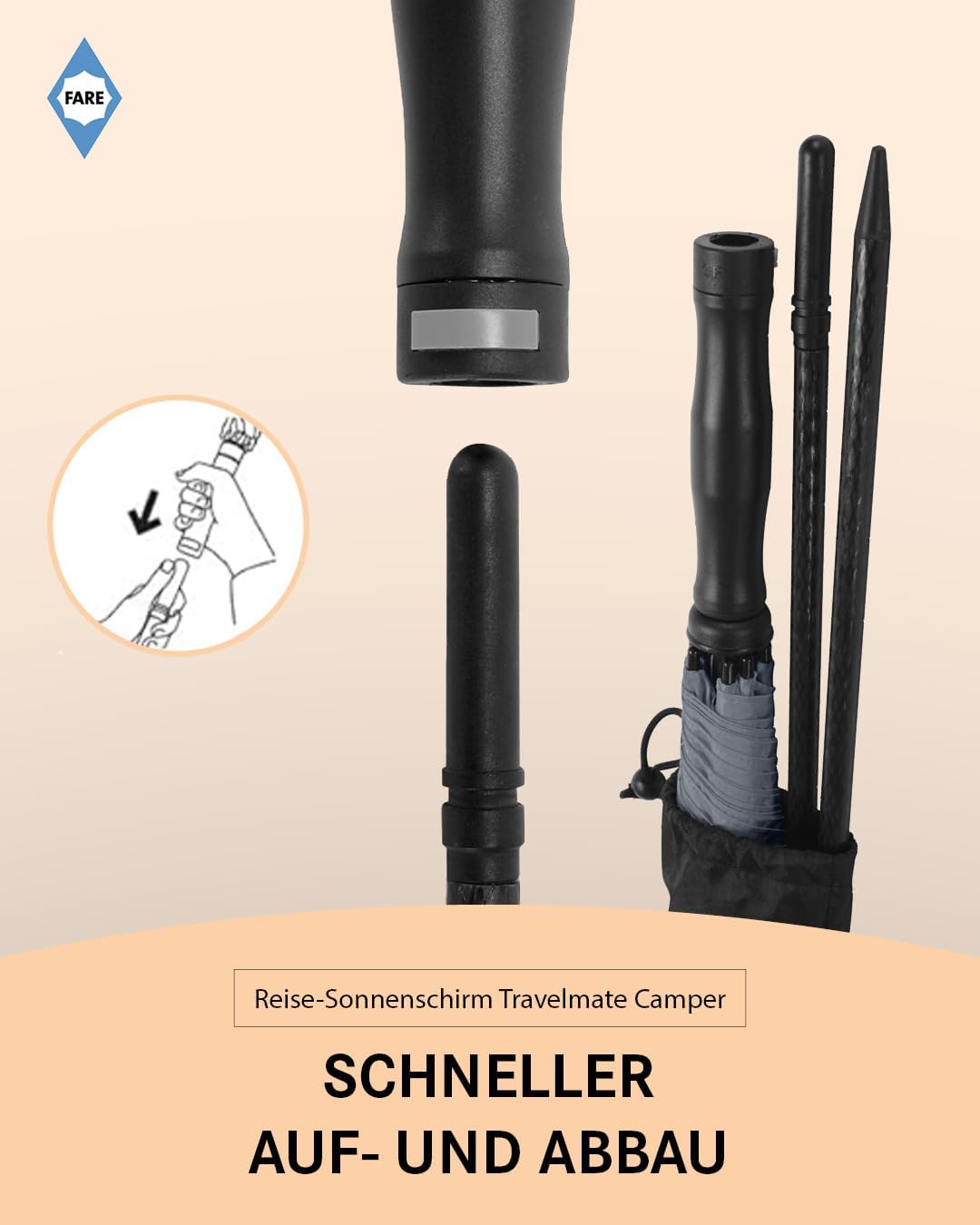 FARE Travelmate Camper – Il vostro ombrellone da viaggio compatto per la valigia: