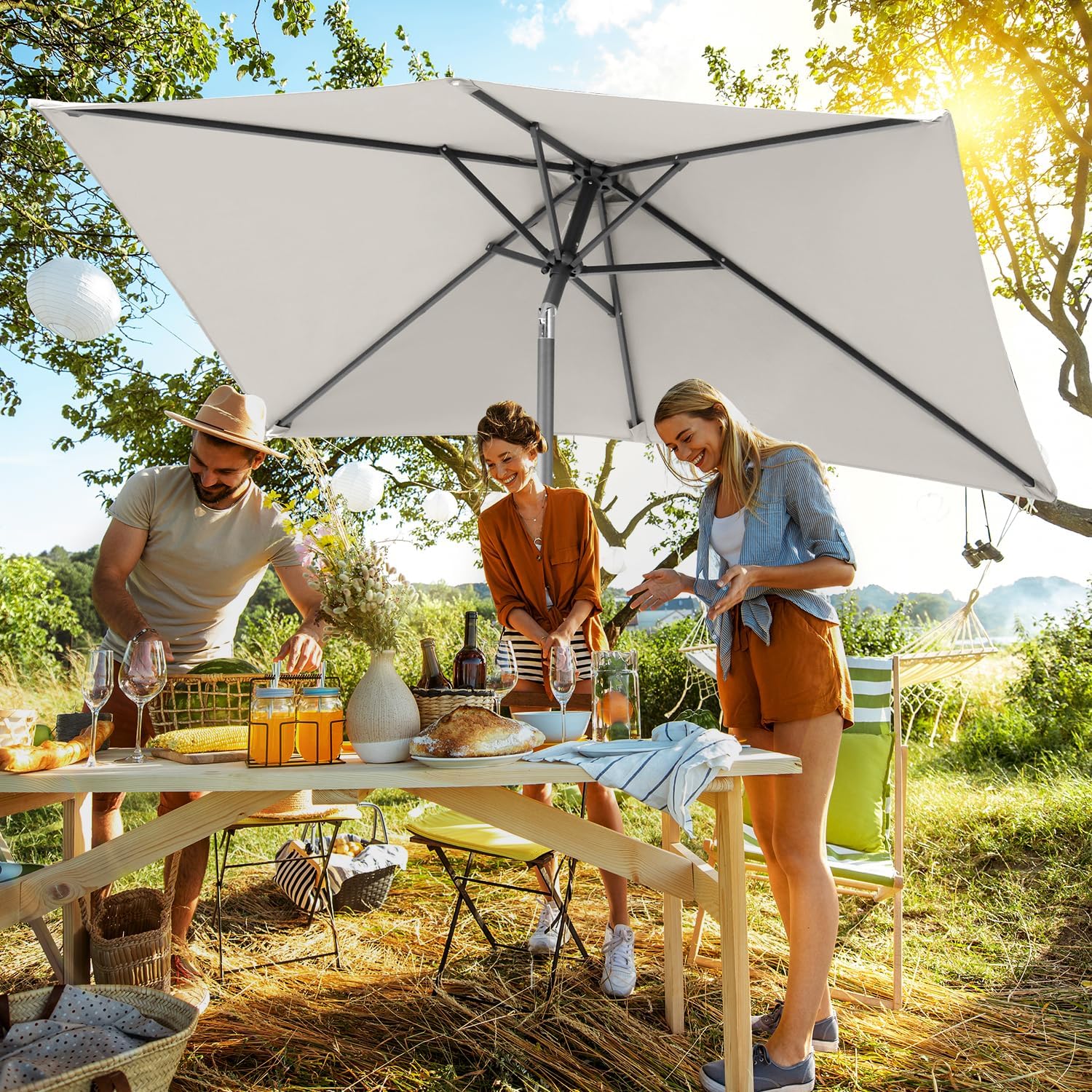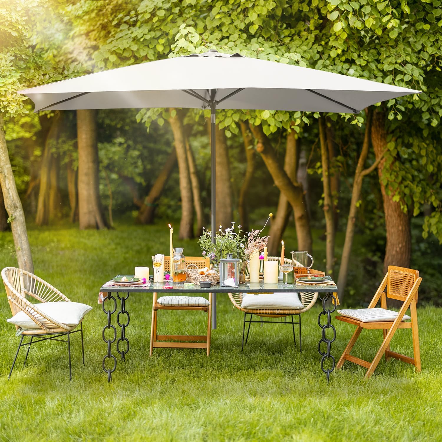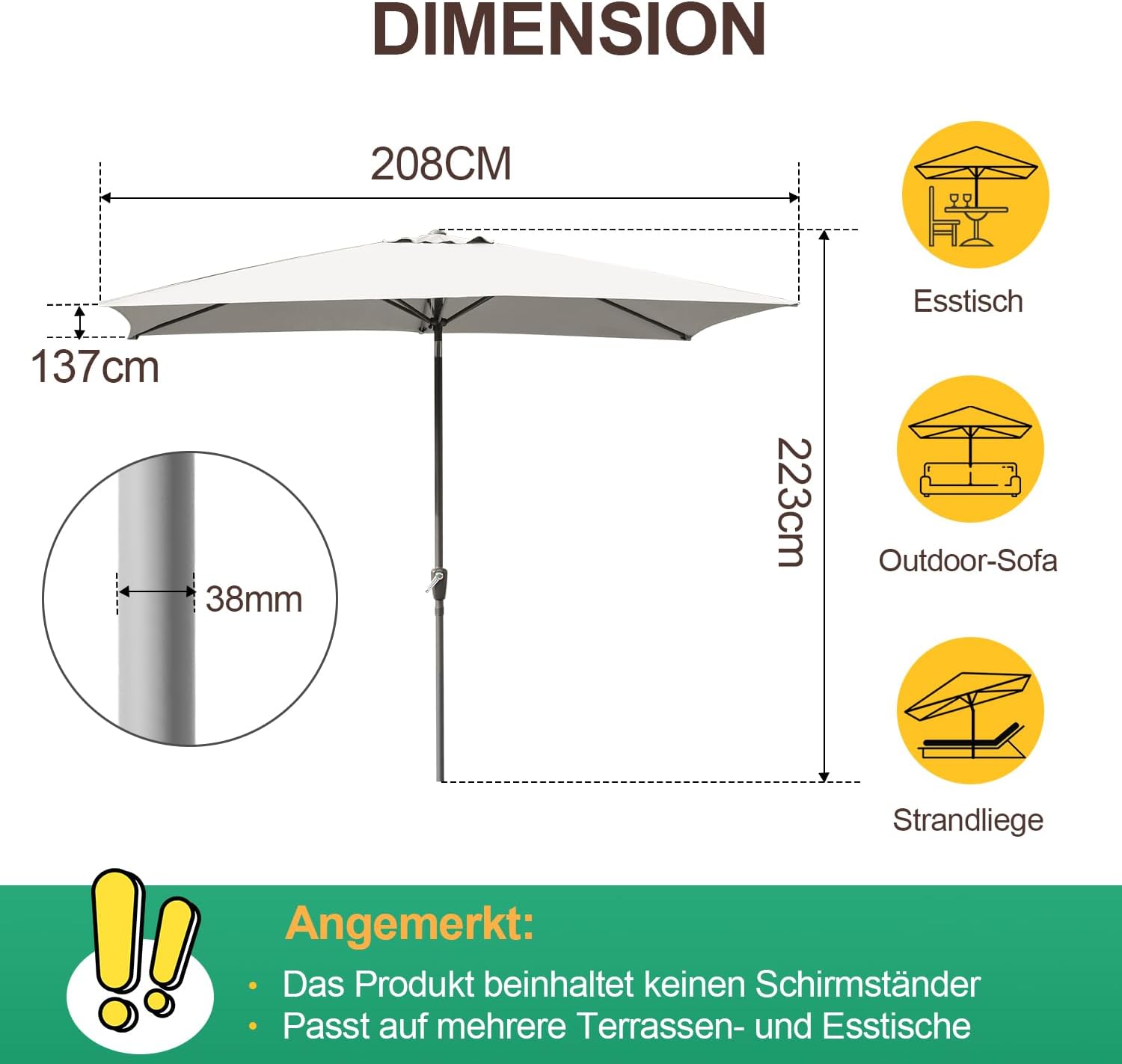 Fiqops Ombrellone 210 x 140 cm con manovella, parasole rettangolare UV50+, pieghevole, ombrellone da giardino, impermeabile, per giardino, terrazza, senza supporto, beige, beige., 210 x 140cm