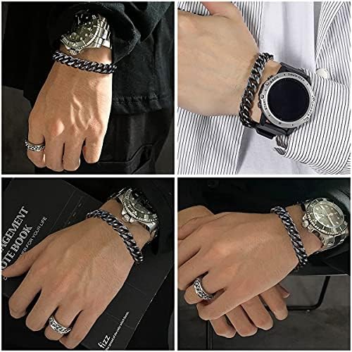 👍 【REGALO PERFETTO】 Braccialetti in stile cubano per uomo e donna, classico argento antico, mascolinità in stile hip-hop e punk, sono accessori perfetti per giacche di jeans e giacche di pelle. Squisite scatole regalo di fascia alta sono la scelta ideale per commemorazioni di viaggio, promozioni pubblicitarie, anniversari o feste di Natale, anniversari.