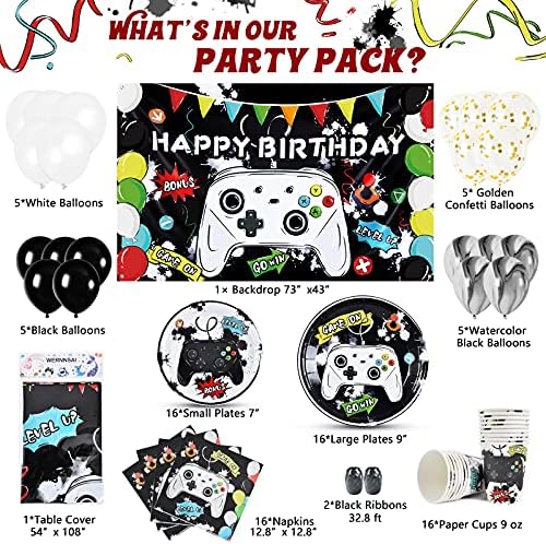-Perfette decorazioni per la festa e set di stoviglie per le feste di compleanno a tema giochi per bambini!