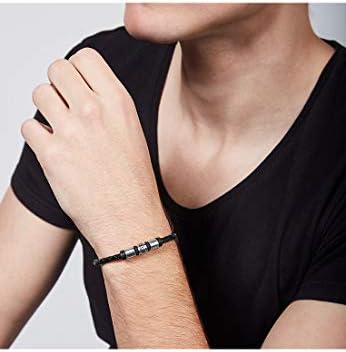 Bracciale in pelle e acciaio inossidabile, chiusura: chiusura a moschettone, lunghezza circa 18 cm