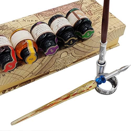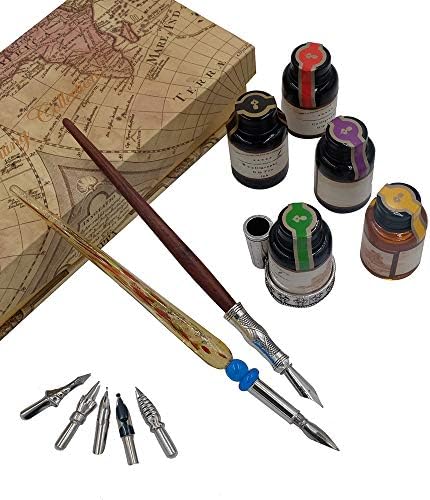 ♥ Riceverete un set per calligrafia contenente una penna in vetro e una penna in legno, 5 pennini di diversa forma, 5 diversi colori di inchiostro e una bella confezione regalo.