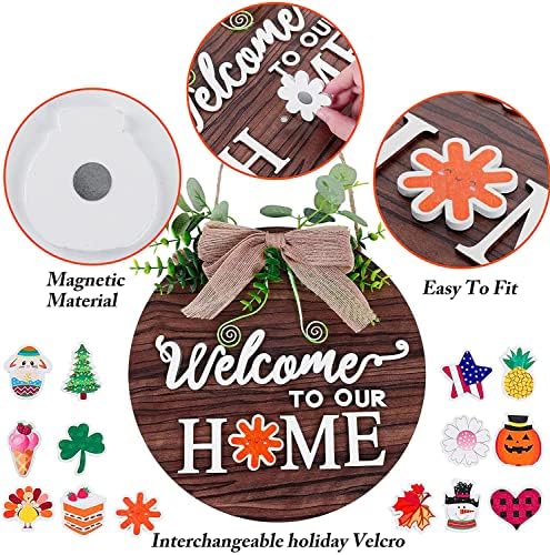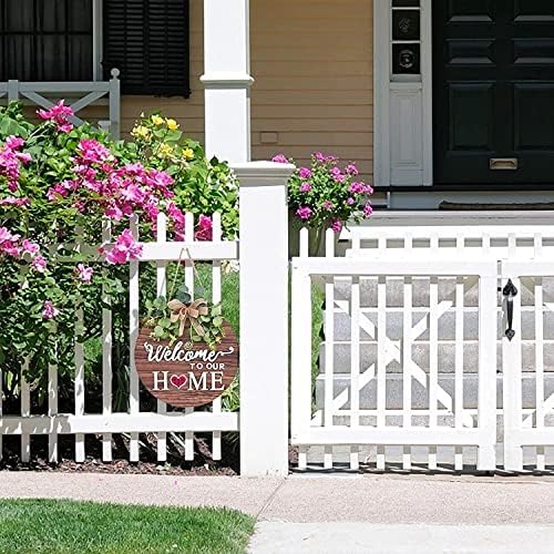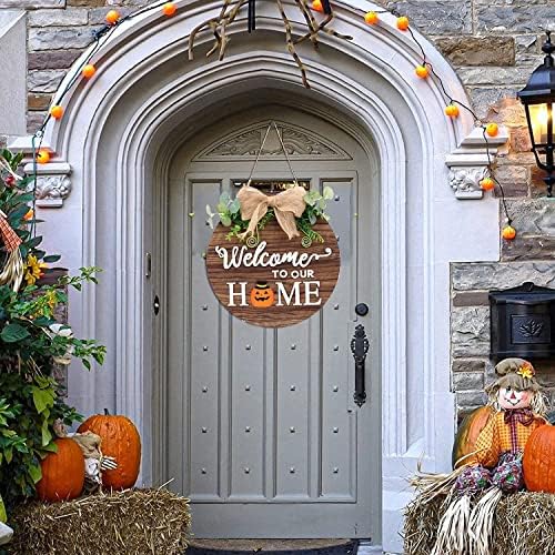 1, Il ghirlanda porta di benvenuto è decorato con foglie e fiocchi artificiali e le accattivanti lettere “welcome to our home” sono in stile country molto e hanno l’atmosfera retrò di una fattoria.