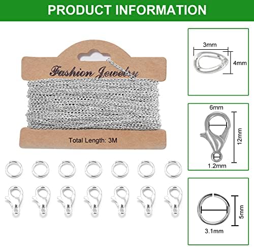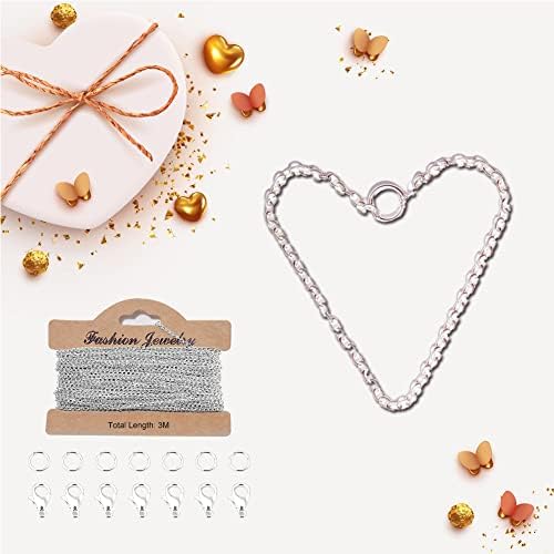 Gioielli a Catena a Maglia,Catena a Maglie a Catena,Collana con Cordino a Catena,Forniture per Gioielli con Anelli di Salto,Fermagli a moschettone per Catena di Gioielli da Uomo,Donna,Fai da Te,3 m