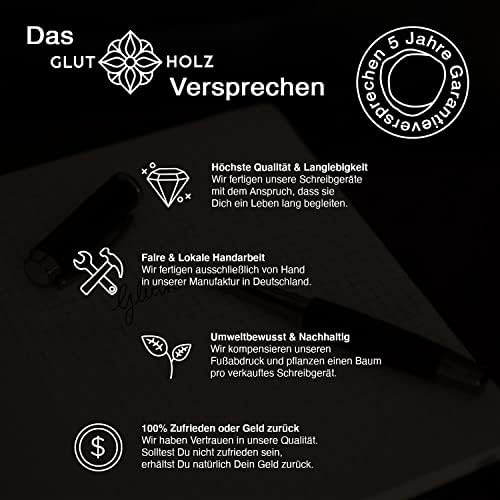 Una penna di GLUTHOLZ non è solo una penna. È un compagno che ti accompagna durante il tuo viaggio di vita e regola nel corso degli anni il suo aspetto alla tua vita. Poiché i nostri strumenti di scrittura sono realizzati esclusivamente in legno, la tua penna è un pezzo unico. Produciamo i nostri strumenti di scrittura nella nostro manifattura in Germania al 100% e siamo orgogliosi di poter intitoliare i nostri prodotti “Made in Germany”. Anche il tema della sostenibilità è al primo posto. Grazie alla spedizione ecologica, all’imballaggio ecologico epiantando un albero ogni ordine compensiamo la nostra impronta ecologica perché per noi è importante il nostre ambiente.