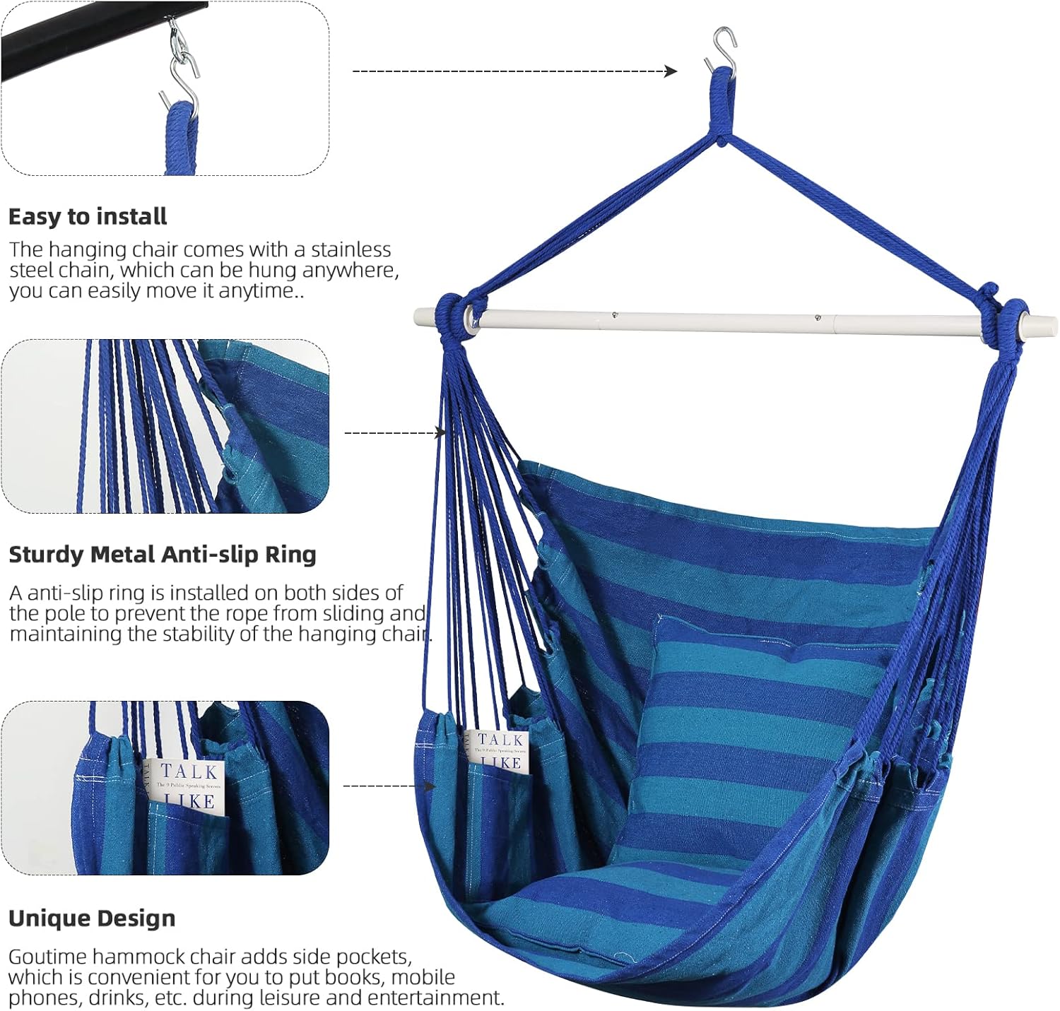 Le sedie per amaca sono così incredibilmente comode e chi non ne vuole uno in casa? La sedia a dondolo viene fornita con alcuni hardware che lo rendono facile da montare. La struttura è robusta e affidabile. La sedia sospesa Goutime è perfetta per fare un pisolino, trascorrere del tempo con amici e familiari, leggere e fare letteralmente tutto.