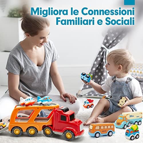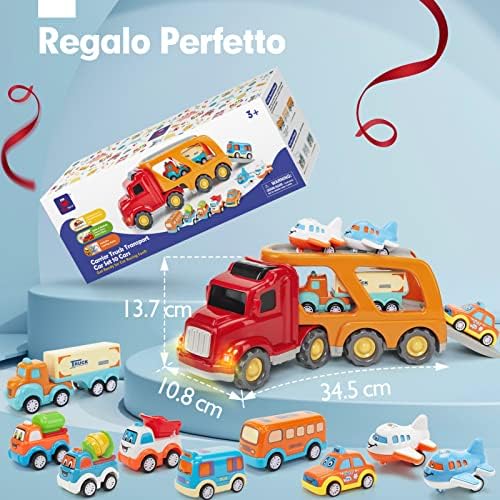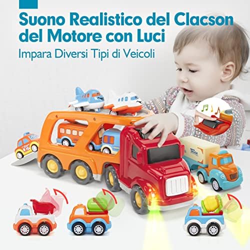 🚎【Regalo Ideale per i Bambini di 2 anni】 Premi il pulsante sul grande camion per il trasporto e produce effetti luminosi e realistici del clacson del motore. Comprese batterie a bottone 3 * 1,5 V.