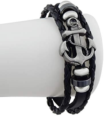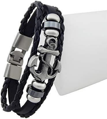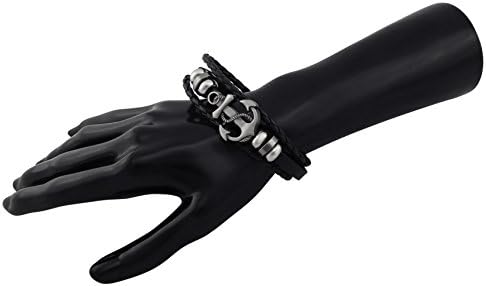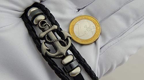 Dettagli: lunghezza: 22 cm, larghezza: 1 cm; Materiale: acciaio inox. Il bracciale è marrone e ha anche elementi di colore argentato in acciaio (fra cui un ancora).
