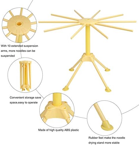 Design perfetto: realizzato in plastica ABS di alta qualità, ha 10 bracci appesi estesi per appendere più spaghetti e occupare meno spazio. 4 piedini in gomma rendono lo stendino per noodle più stabile.