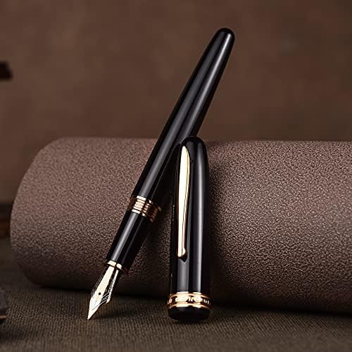 Hongdian 1841 – Penna stilografica a punta fine, in resina nera, con custodia in metallo