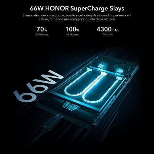 La capiente batteria da 4300 mAh ti assicura una lunga durata. E grazie alla tecnologia HONOR SuperCharge da 66 W ti bastano solo 45 minuti per una ricarica completa.