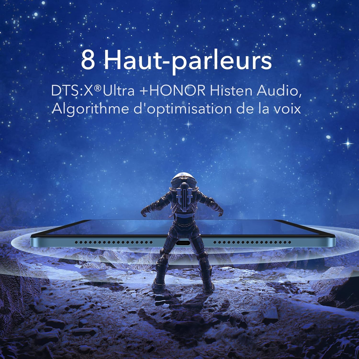 【Potente sistema audio a 8 altoparlanti】 HONOR Pad 8 Tablet, sistema audio stereo a otto altoparlanti, gamma audio surround: gamma audio surround stereo a otto altoparlanti 4 unità audio professionali di alti + 4 bassi, con una piacevole immersione di alti e bassi. DTS:XUltra + HONOR Histen sintonizzazione audio completa, con riconoscimento intelligente della scena audio corrente per cambiare la modalità audio, offrendoti una migliore esperienza di ascolto.