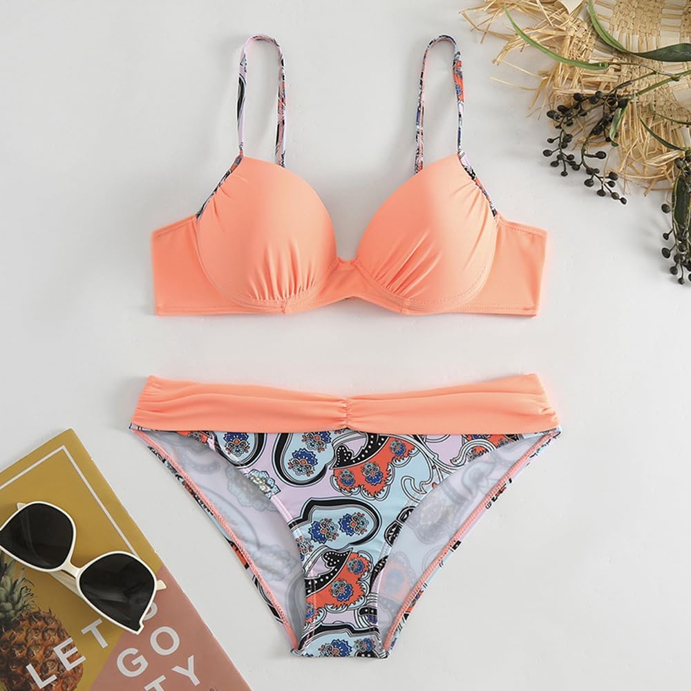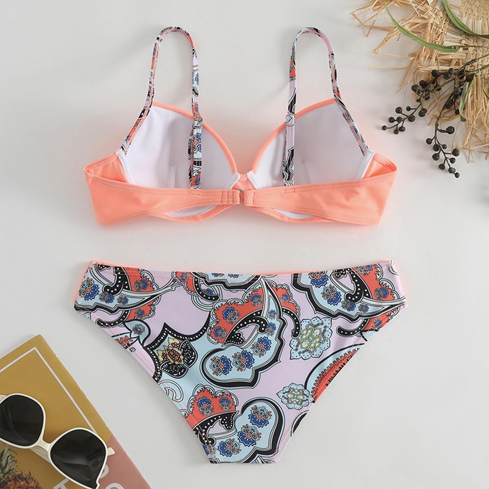 HSAJS Costumi da Bagno Donna Stampe Eleganti Bikini a Due Pezzi Sexy Beachwear Costume da Bagno con Cavezza Festa in Spiaggia
