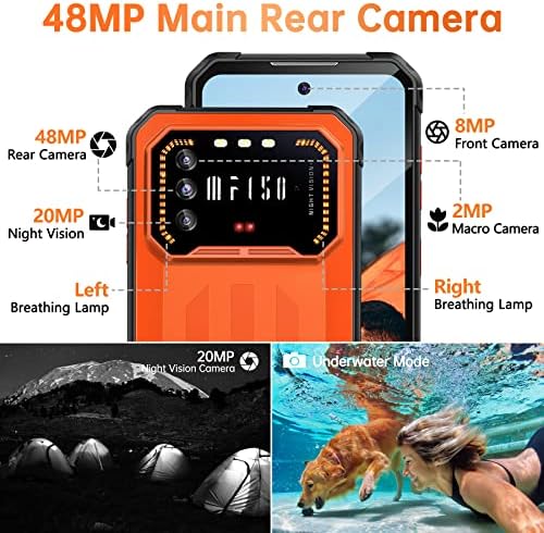 📸【48MP+20MP (Visione Notturna) & Foto Subacquee】Fotocamera posteriore da 48MP + fotocamera frontale da 5MP, immagini nitide e qualità dell’immagine delicata. Fotocamera per visione notturna IR da 20 MP (la portata è fino a 20 m), più potente di altri smartphone impermeabili con fotocamera per la visione notturna, cattura foto con dettagli nitidissimi anche al buio. Impermeabile 1,5 m per 24 ore, non preoccuparti di non avere la fotocamera con te quando nuoti o ti immergi.