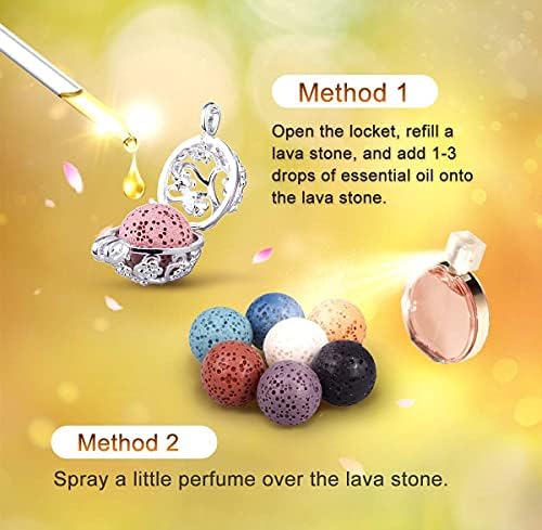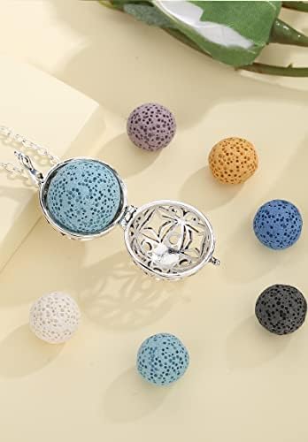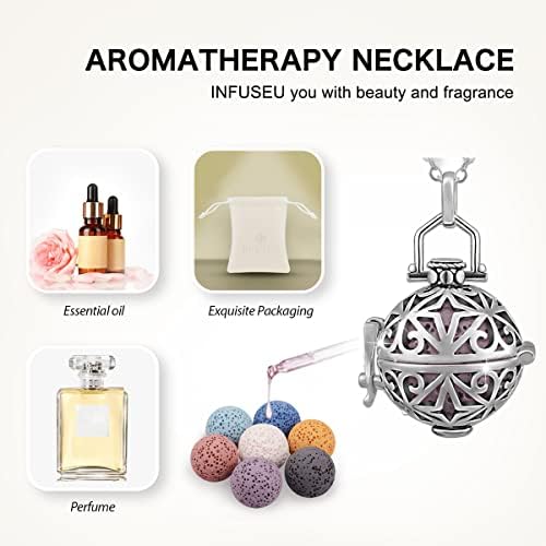 INFUSEU Aromaterapia Olio Essenziale Diffusore Collana Ciondolo Medaglione D’argento 5 PZ Lava Pietre Con 24″Catena, Regalo per le Donne