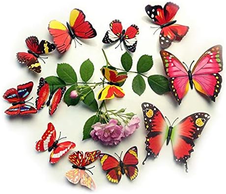 ✡ 72 pezzi (12 Pezzi Rosso / Blu / Giallo / Verde / Rosa / Colore) 3D farfalla adesivi in confezione mista con un rotolo di nastro adesivo in modo da poter utilizzare le farfalle più volte.(Colori Casuali, Fucsia)