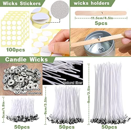 150 Stoppini e 4 Porta Stoppini: 100% cotone ecologico.Ci sono 5 cm, 9 cm, 15 cm, tre dimensioni di stoppini tra cui scegliere, per soddisfare le tue diverse esigenze. Ogni taglia ha 50 stoppini. I nostri stoppini bruceranno puliti e non tossici, senza piombo e zinco, quindi non c’è cattivo odore durante la combustione. Il supporto dello stoppino viene utilizzato per fissare lo stoppino nel mezzo.