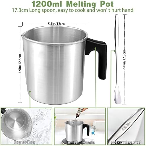 1.2L Crogiolo di Cera di Candela: il manico è anti-caldo, puoi tenerlo mentre fai la candela. Il cucchiaio di ferro da 17 cm può essere utilizzato per mescolare durante il processo di ebollizione della cera e allo stesso tempo riservare una lunghezza sufficiente per evitare di ferirsi le mani.