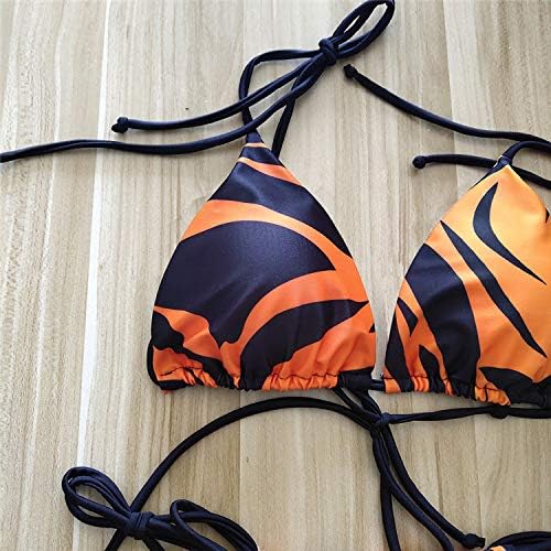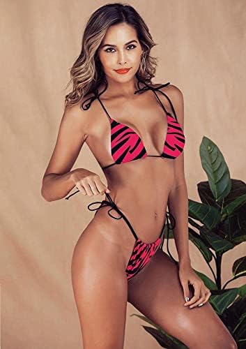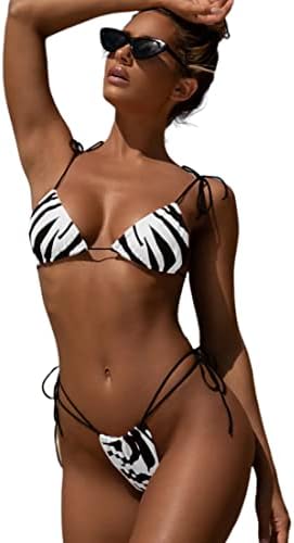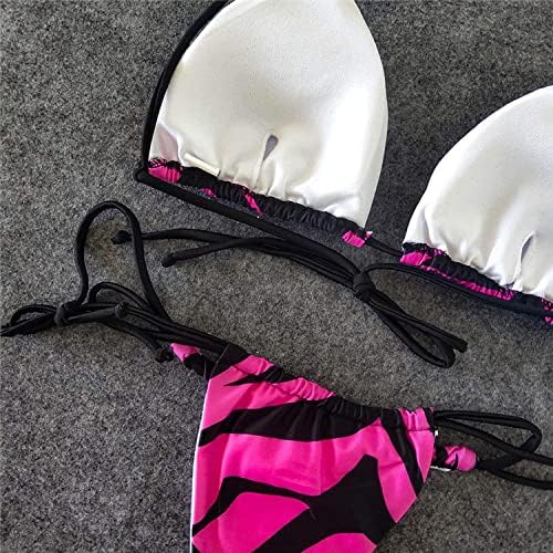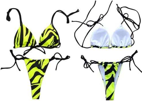 JFAN Costume da Bagno Donna Sexy Triangolo Bikini Due Pezzi Righe Stampate Costumi da Bagno Lucente Clubwear
