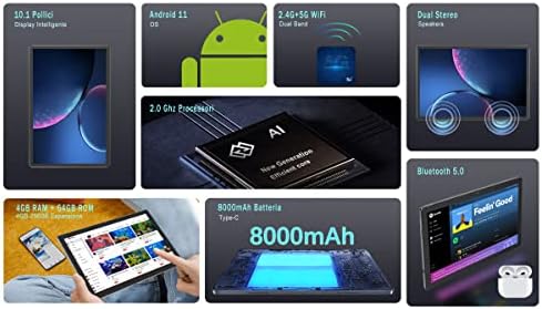【ANDROID 11 OS & MEMORIA】Il tablet J10 è dotato di sistema operativo Android 11 OS, processore da 2,0 Ghz, sistema di risparmio energetico e sistema di allocazione della memoria intelligente, che fornisce stabilità e compatibilità per il buon funzionamento del tablet e riduce il consumo energetico. 4 GB di RAM e 64 GB di ROM incorporati e supporto di espansione della memoria da 4 a 256 GB, offrono più spazio per il funzionamento dell’applicazione e i dati, l’archiviazione dei file.
