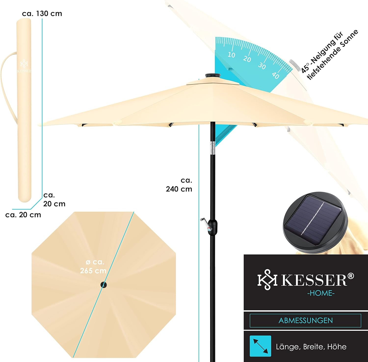 KESSER® Ombrellone da balcone LED solare con manovella, inclusa custodia, ombrellone da giardino, ombrellone da 205 x 125 cm, per balcone, giardino e terrazza