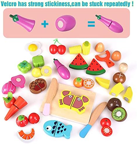 Molto divertente fingere di tagliare e mangiare frutta e verdura. Una somiglianza realistica con il cibo vero!Il velcro si attacca bene e i bambini possono fingere di tagliarli, ottimo per le capacità motorie e il gioco creativo!Insegna ai nostri bambini i diversi tipi di frutta e verdura. Ha tutto il tempo per il gioco creativo. Hanno una dimensione perfetta per le sue piccole mani.