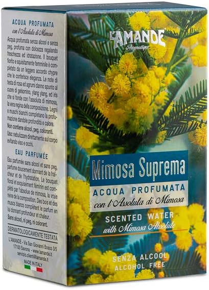 L’AMANDE – Acqua Profumata Donna Spray Analcolica dalle Note Agrumate, Idratante all’Arancia e Bergamotto, Lozione Rinfrescante e Fiorita al Profumo di Rosa e Patchouli – Mimosa Suprema, 100 ml