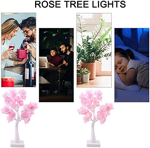 Lampada a LED per albero di Natale, con 24 fiori di rosa, lampada a LED per albero di Natale, decorazione per la casa, touch switch (alberi a LED piccoli) (rosa)