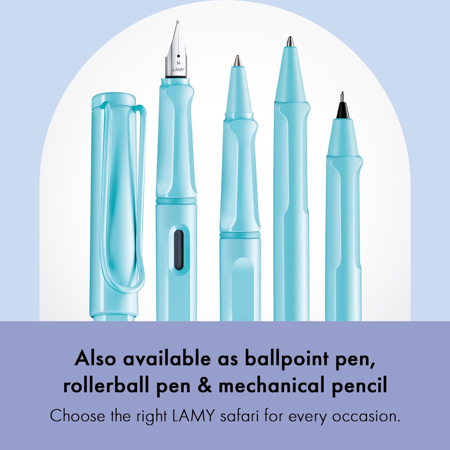 Lamy safari aquasky – Stilografica con impugnatura ergonomica e pennino in acciaio lucido misura F – ideale per la scrittura e la calligrafia – cartuccia T 10 blue inclusa – destrimani
