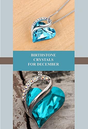 SPECIFICHE – Dimensioni del pendente: 0,5 “x 0,9” | Lunghezza catena: 18 “+ 2” | Placcatura: bianco argento placcato argento | Fermaglio: Lobster Claw | Pietra: Pietra a forma di cuore selvaggio con cristalli Swarovski, Flourite Aqua Blue; Strass Swarovski Zirconi Flatback, Colore Crystal AB.