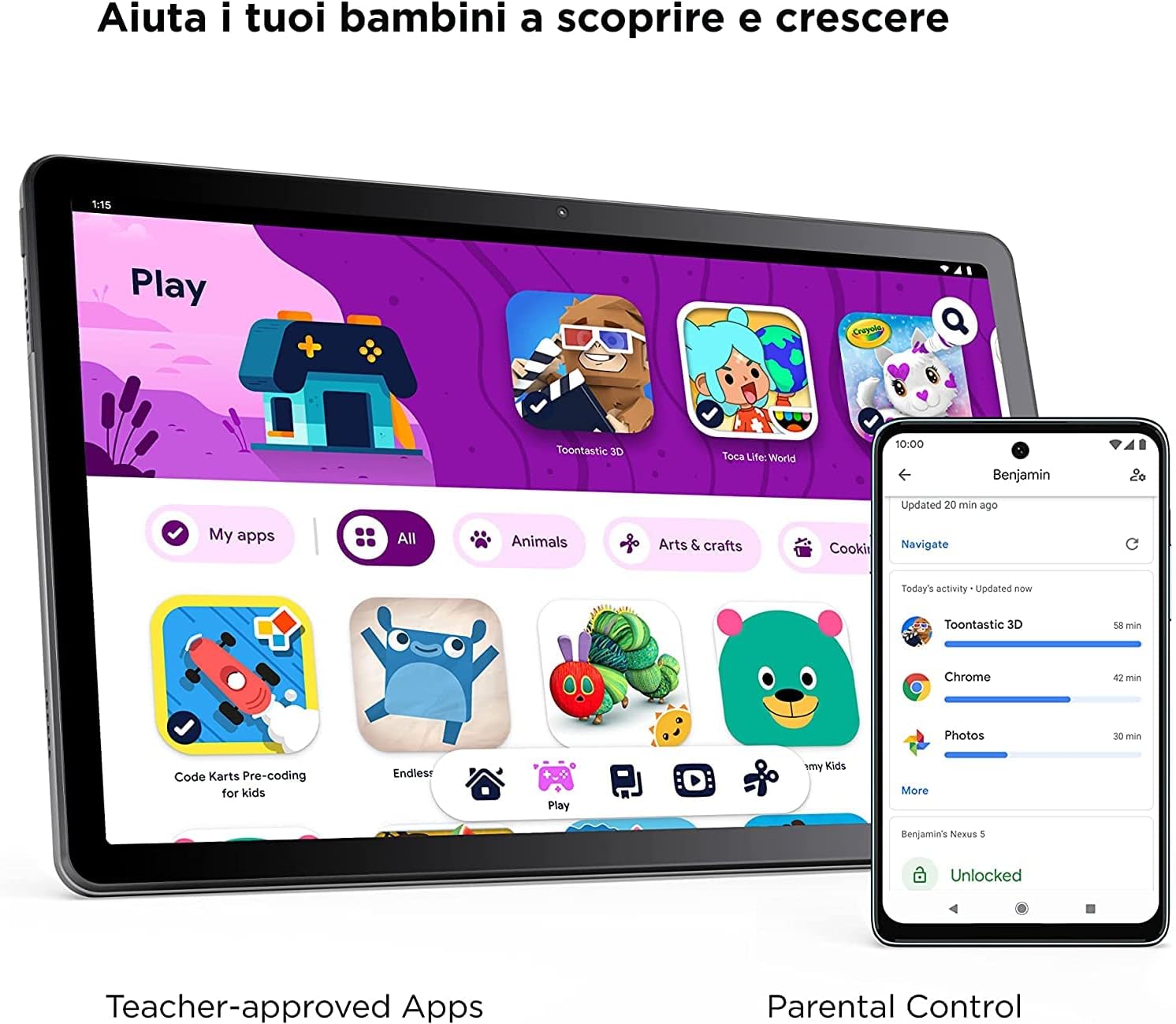 Memoria RAM 4GB Soldered LPDDR4x espandibile tramite MicroSD Card fino a 128 GB, FAT 32; fino a 2 TB, exFAT per migliorare le prestazioni del tuo tablet in ogni momento