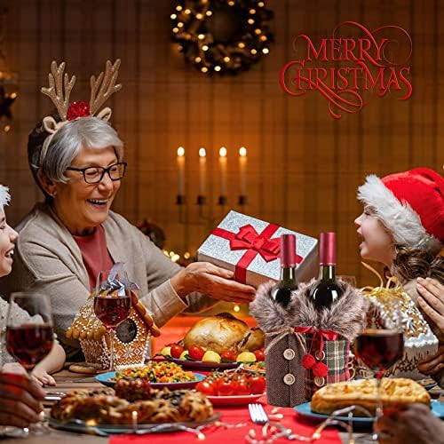 【Dimensione perfetta】La decorazione natalizia sacchetto vino, L’altezza è di circa 23 cm e la lunghezza è di circa 13 cm. e si adatta alla maggior parte delle bottiglie di vino.
