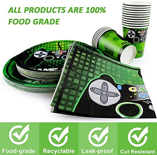 LKNBIF Set di Articoli per Feste Gioco – Decorazione Videogioco Forniture Feste, Accessori per Feste di Gioco Include Piatti, tovaglioli, Tazza, Serve 16 Ospiti 68 Pezzi